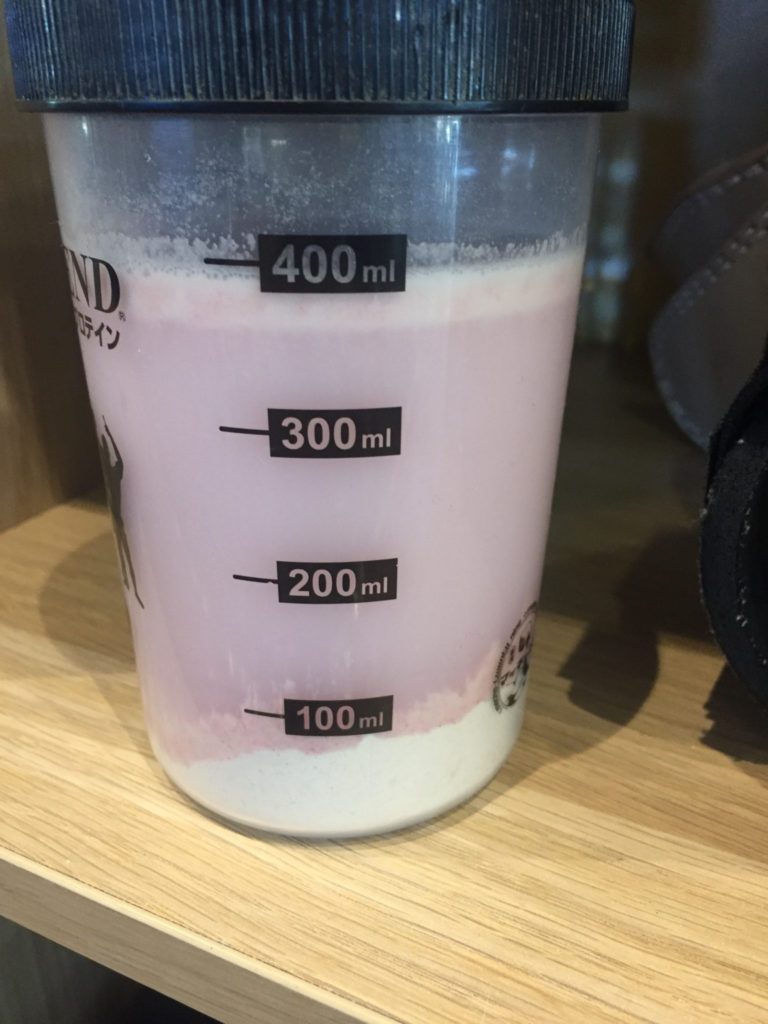 粉が入っているシェイカーに、水を入れてそのままシェイク。するとほとんどの確率でダマになり、めっちゃくちゃ飲みにくい!