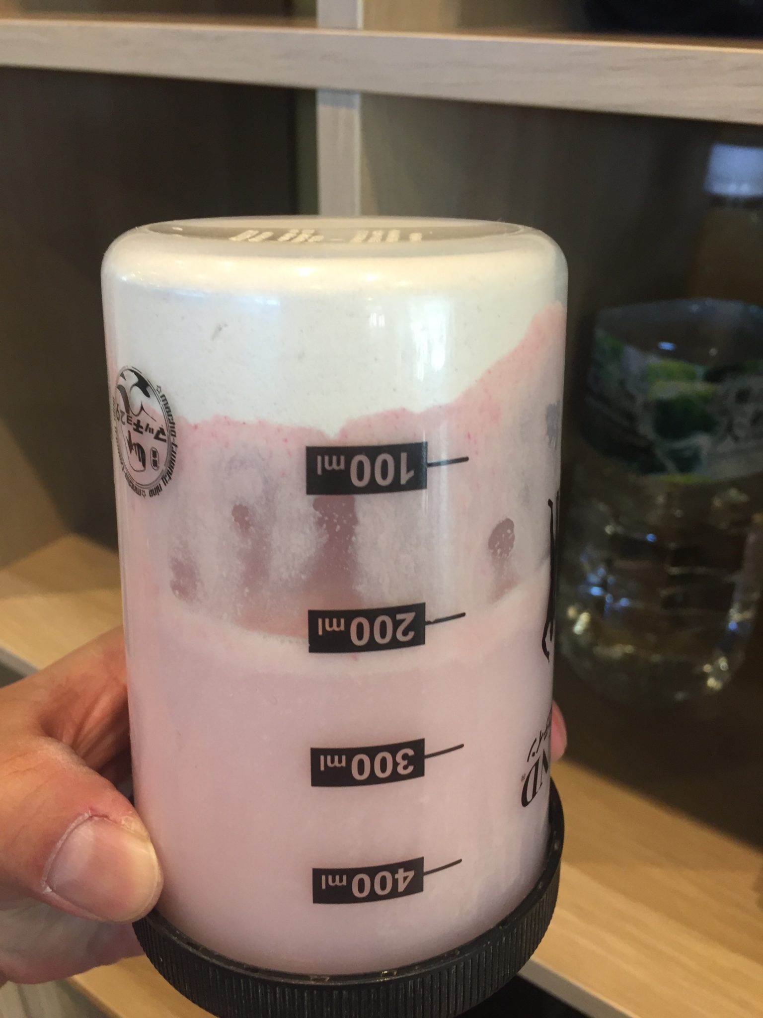 最初は「これは溶けやすくて飲みやすい」と思ったのだけれども、次の注文で届いた「ストロベリークリーム味」をビルダー飲みをしたらガムみたくなっちゃって飲みにくいったらない。